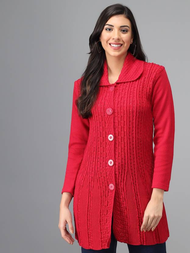 eWools Woven Collared Neck Casual Women Pink Sweater