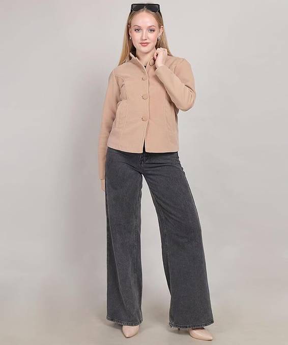 Elevate your style with this chic and versatile beige blazer. Crafted from premium quality fabric, this blazer offers a comfortable and flattering fit. The clean, minimalist design allows you to effortlessly transition from the office to evening events. Layer it over a crisp blouse or a simple t-shirt for a polished look. With its timeless appeal and impeccable tailoring, this blazer is a must-have addition to your wardrobe. Pair it with tailored trousers or jeans for a sophisticated yet casual ensemble. Embrace modern sophistication with this elegant and practical blazer.