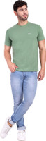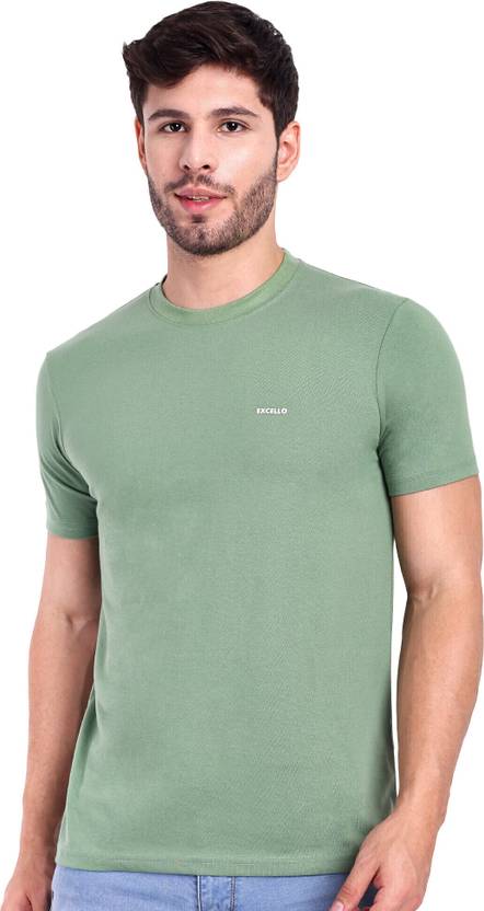 Excello Solid Men Round Neck Light Green T-Shirt