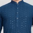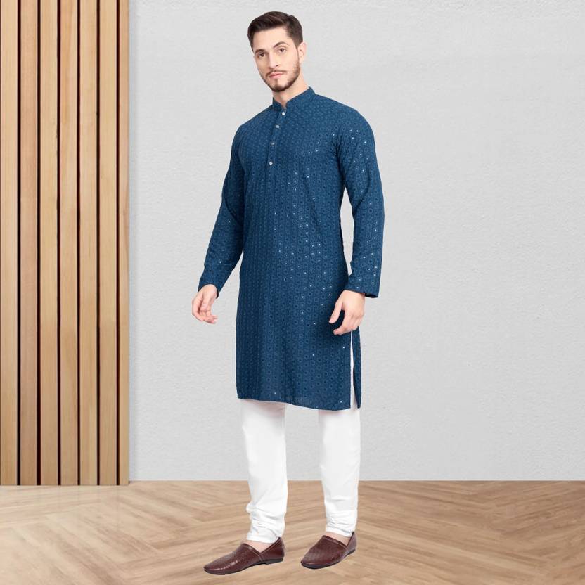 Rayon Stylish Ethnic Wear Full Chikankari Sequin Embroidery Mirror Work Traditional Straight Kurta Pyjama Set for Men