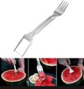 Stainless Steel Watermelonforkslicer : The unique tool for hassle-free watermelon enjoyment. Its dual-functionality allows you to slice a variety of fruits and eat with Fork. Material : High Quality Material Steel.The sturdy handle provides a comfortable grip.