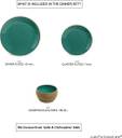 The 'Earthen Turquoise' from the collection 'Goan Paradise', is a studio pottery dinner set comprising of 4 dinner plates, 4 quarter plates and 4 katoris of 180 ML each, handmade & handglazed in Ceramic by skilled Indian artisans. It depicts a beautiful amalgamation of contrasting shades of glossy turquoise blue colour in a pastel tone and a sober earthen brown coloured terracotta-like matte finish. It is ideal to be used for serving daily meals to 4 people, the dinner plates are ideal for serving large or main meals, the quarter plates are ideal for serving chapatis, breads, appetizers, or desserts and the katoris for serving curries, dal, vegetables, curd, dessert, etc. This set is lead free as well as microwave and dishwasher safe.