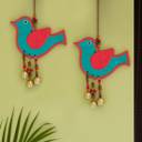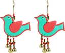 ExclusiveLane 'The Robin Twins' Handmade & Hand-painted Decorative Wall Hanging In Terracotta (Set of 2) Pack of 2 (14.3 cm X 2.3 cm, WALL HANGING: Multicoloured, BELLS: Golden)