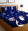 EXFAB Cotton King Fitted (Elastic) 244 TC Cartoon Bedsheet (Pack of 1, Blue Grey)