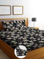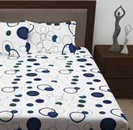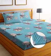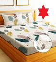 EXFAB Cotton Double Fitted (Elastic) 244 TC Printed Bedsheet (Pack of 1, White)