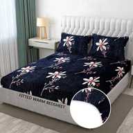 EXFAB Woolen King Fitted (Elastic) 354 TC Printed Bedsheet (Pack of 1, Navy Blue)