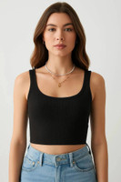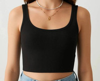Sporting a round neck and sleeveless cut, this top provides a slim fit that follows the natural curves of the body. Thanks to its tank top style and crop length, it allows freedom of movement while maintaining a tidy silhouette. Boasting a straight bottom hem, this garment sits evenly at the waistline, offering a secure and steady fit. Courtesy of these thoughtful details, this top can be worn alone or layered with other garments, giving flexibility in styling for casual or warm-weather occasions.