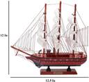 Exim Decor Wooden 12 inches Red with Rails Sailing Ship Showpiece Decorative Showpiece - 30.5 cm (Wood, Red)