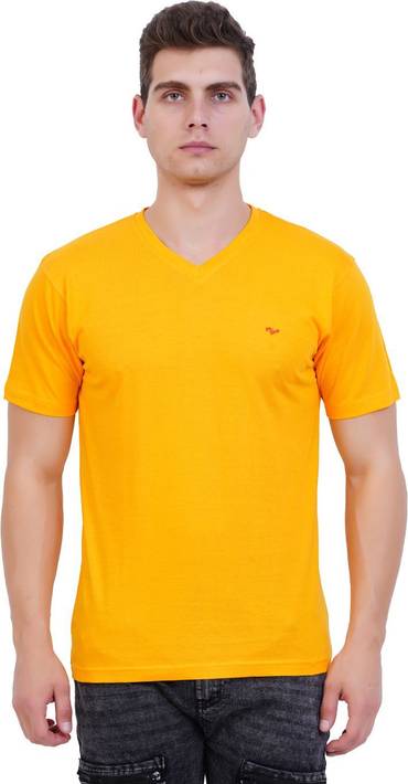 Men Solid V Neck Pure Cotton Blue T-Shirt