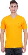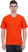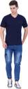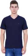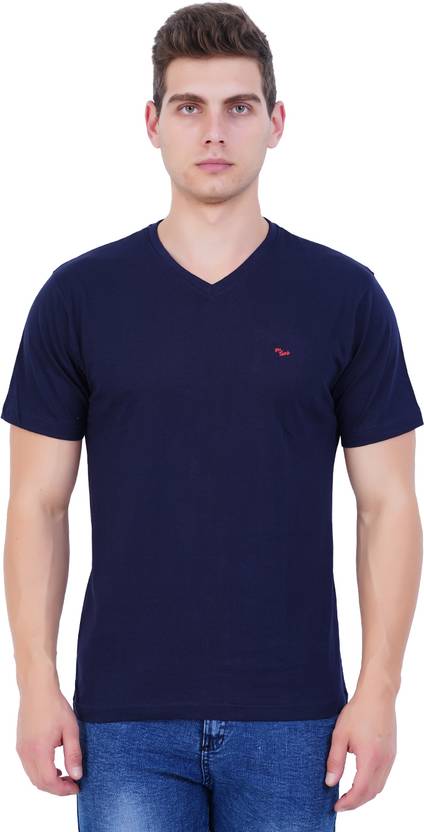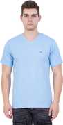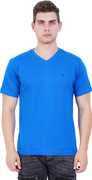 EXLAN Solid Men V Neck Blue T-Shirt