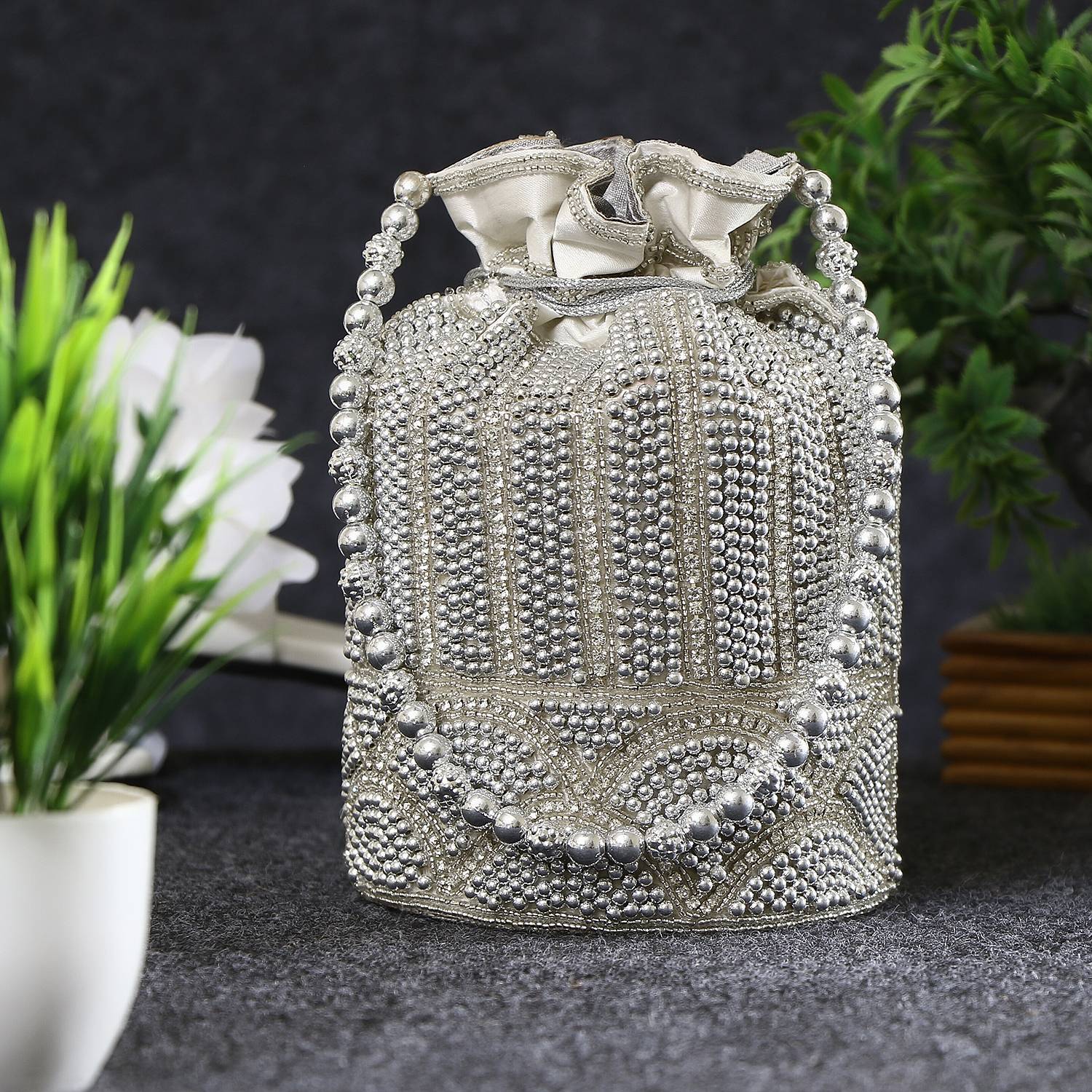 Indulge in elegance with our Embellished Silk Potli Bag designed exclusively for women and girls. Handcrafted with utmost precision, this exquisite bag boasts intricate embroidery, shimmering sequins, and meticulous beadwork, showcasing a harmonious fusion of traditional craftsmanship and modern allure. Perfectly suited for various events, from lively parties to grand weddings and festive gatherings, this Potli Bag radiates sophistication and charm. Elevate your ensemble effortlessly by adding this statement accessory that exudes timeless style and cultural finesse.