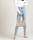 This Ladies Hand Bags Is made By Exotic Brand. A must have for modern Girls/women is this beige colored handbag. Simple yet appealing, the handbag features elegant design, trendy, twin grab handles that will surely help you receive a lot of compliments.Complement your contemporary look with this stylish handbag.Exotic presents this handbag which is perfect to carry at work or adorn casually. Crafted from high-quality PU leather, this bag opens to a sizable interior, perfect to stow your essentials and is detailed with polished hardware for a sleek finish. It features an adjustable strap for easy carry and a zip closure for your valuables. Match with casuals or ethnic etc. wear for a complete look. There are three separate compartments with One separate Zipper Openings in this Bags, Crafted from high-quality Textured PU leather & High Quality Polyester Lining that support the fine exteriors.