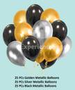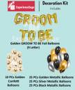 GROOM TO BE letter balloons (gold), 25 black latex metallic balloons, 25 golden latex metallic balloons 25 silver latex metallic 10 golden confetti balloons