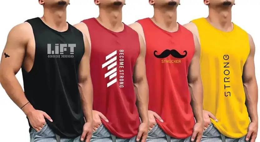 Step up your style and performance with this value pack of 4 graphic print gym vests. Designed for the modern man, these sleeveless tank tops offer the perfect blend of comfort, style, and utility, whether you're hitting the gym, going for a run, or rocking a casual look.