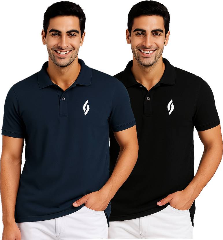 Pack of 2 Men Solid Polo Neck Polycotton Multicolor T-Shirt