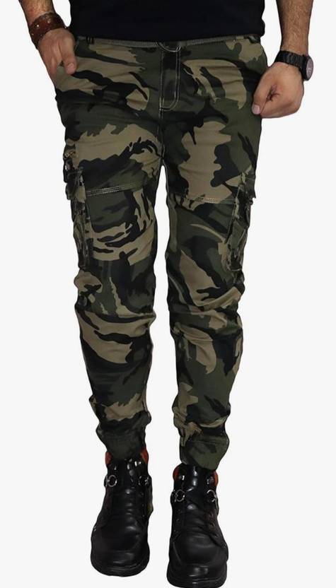Comfortable Fit: Our men's cotton printed camouflage cargo trousers feature a relaxed fit that allows for unrestricted movement, making them ideal for all-day wear., Durable Construction: Made from premium-quality cotton, these trousers are built to last, ensuring you can enjoy their stylish appeal for seasons to come., Versatile Styling: Whether you're pairing them with a casual t-shirt for a laid-back look or dressing them up with a button-down shirt, these cargo trousers effortlessly adapt to any occasion.