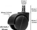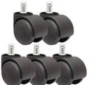 HEAVY DUTY OFFICE CHAIR CASTER WEELS REPLACE BROKEN OR WORN WHEELS MAKE YOUR OLD CHAIR NEW AGAIN. NYLON TWIN CASTOR WHEELS FOR OFFICE CHAIR FURNITURE PIN TYPE (BLACK)WHEELS SET OF 5PC PACK IN ONE PACKET . THIS TYPE WEELS USED FOR OFFICE CHAIR WEELS.AND LOAD CAPACITY 150Kg