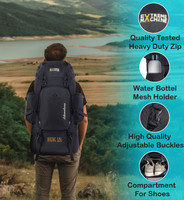 Extreme Machine Metal Frame Detachable Rucksack for Trekking, Hiking with Rain Cover Rucksack - 125 L (Black)
