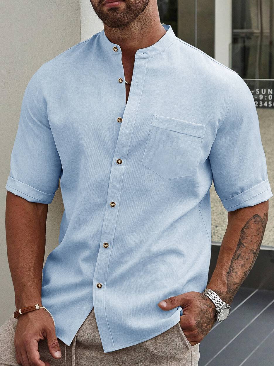 Men Regular Fit Solid Mandarin Collar Casual Shirt