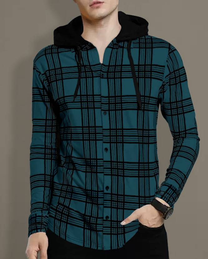 EyeBogler Printed Men Hooded Neck Blue T-Shirt
