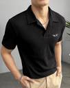 EyeBogler Self Design Men Polo Neck Black T-Shirt