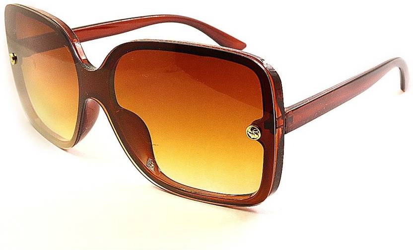 UV Protection, Gradient Over-sized Sunglasses (22) (For Women, Brown, Yellow)