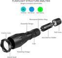 EzLife Tactical Flashlight is very powerful. It uses Cree XML T6 LED with a convex lens to adjust the focus, Yes this is a zoomable torch and you can zoom in and use as a search light or you can zoom out and use it as lantern which will give full room illumination. The zoom focus of this torch can reach up to 500 meters. Body is made from high strength aviation grade aluminium, Body is designed ergonomically so it feels great in your hands, Athletics can use this torch in bicycle handle, (attachment clip not included) . Torch can be powered by rechargeable LI-ION batteries also you can use 3 AAA type disposable batteries (Not included). SPECIFICATIONS: â†'Model: EzLife EL-FL â†'Emitter Type: CREE XM-L T6 â†'Bulb Quantity: 1 â†'Light Color: White â†'LED Lifespan: 100,000 hours â†'Modes: 5 â†'Mode Arrangement: Hi > Mi > Lo > Strobe> Sos > Zoom in & out â†'Battery Configuration: 1 x 18650 or 3 x AAA batteries â†'Input Voltage:3.6-4.2V â†'Switch Type: Clicky/Clickie â†'Switch Location: Tail-cap â†'Lens: Convex Lens â†'Special Features: Zoomable â†'Material: Aluminum Alloy â†'Color: Black â†'Dimensions(L x Head Dia. x Body Dia.): 5.31 x 1.37 x 1.10 inch / 3.5 x 3.5 x 2.8 cm Other Features: â†'Up to 4x brighter than ordinary Flashlights, 5 beam modes: High, Medium, Low, S.O.S. and Strobe. 2000x Zoom Function (Ultra brightness: up to 5000 LUX) - Tough-grade Aluminum Casing - Water and shock resistant â†'Super Powerful & Handy - Suitable for Self Safety, hunting, cycling,trekking, climbing, camping and outdoor activity etc â†'Compact size and a convenient strap for added portability. Low power consumption, long running time. - High-power: taclight is made from air-craft Grade aluminum and can withstand extremes of temperatures, from freezing to boiling. It is Water Resistant and shock resistant.
