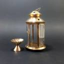 eze enterprises DIya/lamp Cover with glass (with Lamp/Diya) for Tulsi Deepam / Akhand Diya. Brass, Glass Hanging Diya Set (Height: 5 inch)