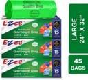 EZEE Dustbin Bag|24'' x 32''|15Bagsx3Roll|Leak-Proof & 2X Strong|For Dry & Wet Waste Large 60 L Garbage Bag Pack Of 45 (45Bag )