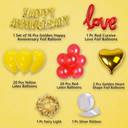 Happy Anniversary Foil Balloon golden, Red Love foil balloon, 20 golden and 20 red metallic balloon, 2pc golden heart 10inch, 1pc fairy light, 1pc Ribbon
