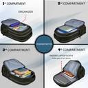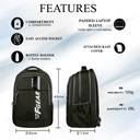 Introducing our F Gear Airmate Laptop Backpack, versatile and durable backpack, designed to meet all your organizational and comfort needs. With four spacious compartments, including a padded laptop sleeve for devices up to 17 inches and an organizer in the first compartment, plus an easy access front pocket, you'll have ample storage for all your essentials. Crafted from high-quality, water-resistant black polyester fabric, this backpack is built to withstand all the rough conditions and includes an in-built rain cover and dual bottle holders for added convenience. Comfort is ensured with anti-sweat breathable air mesh padding for maximum back support, adjustable shoulder straps for a customized fit, and a padded handle for easy carrying. Whether you're commuting, traveling, or heading outdoors, this backpack seamlessly blends functionality with style.