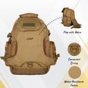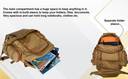 This is a very sturdy bag. This bag is can be used in more than one ways. Following are the key points: There is a detachable waist pouch. This waist pouch can be used in combination with the bag either in the front or back. It also can be used independently without the bag. There is an Integrated Flap Jacket cover for lidless use. This flap is most suitable to keep helmets, footballs etc Air flow channels at the back are designed to help ventilate your back and delay the onset of your sweaty mess. The ridges are typically shaped to try to balance comfort with airflow and also reduce the surface area of your back against the backpack. In hot weather, though, they wonâ??t be able to prevent your back from getting sweaty. But at least theyâ??ll delay it. This bag has MOLLE which implies it is modular lightweight load-carrying equipment and allows users to attached gear to an array of nylon webbing. This has a very big compartment along with a large pocket in the front and two small pockets on both sides. Sternum strap & hip belt present, they both help in providing a snug and comfortable fit. Apart from provide support. Dual side compression straps present.