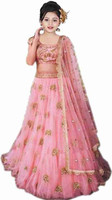 F Plus fashion Girls Lehenga Choli Ethnic Wear Embellished Ghagra, Choli, Dupatta Set (Pink, Pack of 1)