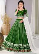 F Plus fashion Girls Lehenga Choli Ethnic Wear Embellished Lehenga, Choli and Dupatta Set (Green, Pack of 1)
