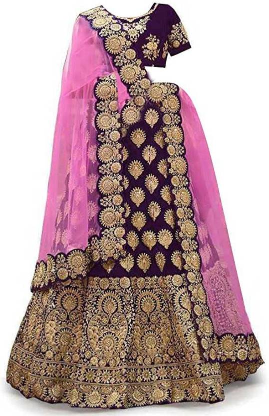 F Plus fashion Girls Lehenga Choli Ethnic Wear Embroidered Lehenga, Choli and Dupatta Set (Maroon, Pack of 1)