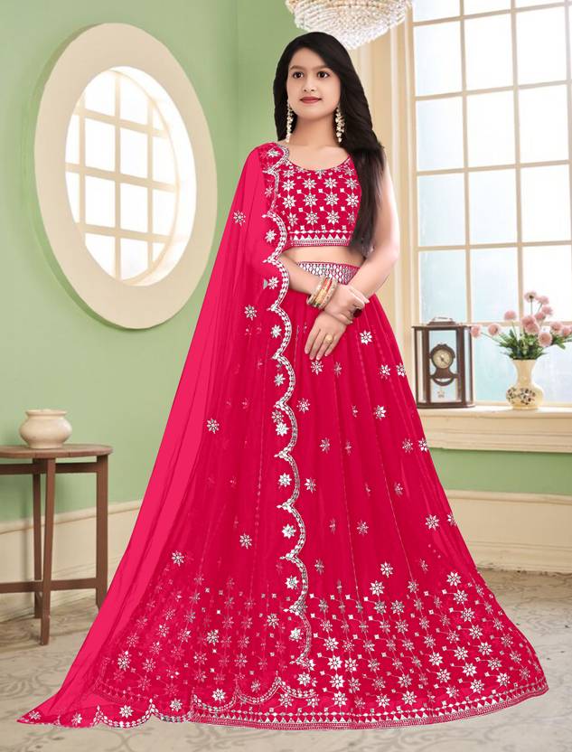 F Plus fashion Girls Lehenga Choli Ethnic Wear Embroidered Lehenga, Choli and Dupatta Set (Multicolor, Pack of 1)