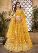 F Plus fashion Girls Lehenga Choli Ethnic Wear, Fusion Wear, Party Wear Embellished Lehenga, Choli and Dupatta Set (Yellow, Pack of 1)