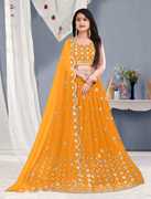 F Plus fashion Girls Lehenga Choli Ethnic Wear, Fusion Wear, Party Wear, Western Wear Embroidered Lehenga, Choli and Dupatta Set (Orange, Pack of 1)