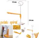 Material: Stainless steel. Color: Silver+White+Yellow. Package including :4 spits Potato Tower Chips Making Twist Shredder. Package List: 1 set potato spiral cutter Feature:This machine has aluminum-zinc alloy and stainless steel cutting tools and other materials, the other parts by electroplating, spray and other process.