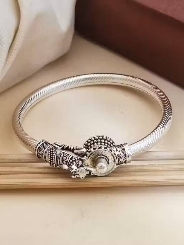 Silver Plated Lord Shiva Shivling with Nandi Embossed Lockable Kada Bracelet for Men & Women A Gorgeous Kada For All The Lovers Of Sankara, Lord Shiva, Bholenath With Exquisite Carvings Of A Trishul Chand and Damroo .
