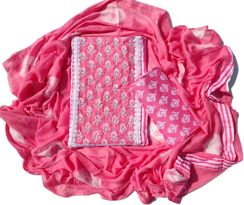 Unstitched Pure Cotton Salwar Suit Material Embroidered, Printed