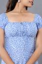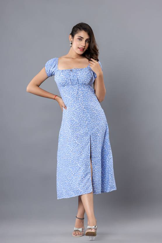 Fab Star Women A-line Light Blue, Dark Blue, White Midi/Calf Length Dress