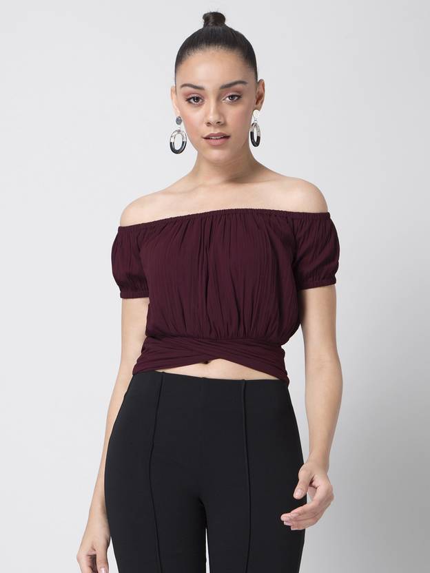 FABALLEY Casual Sleeveless Solid Women Purple Top