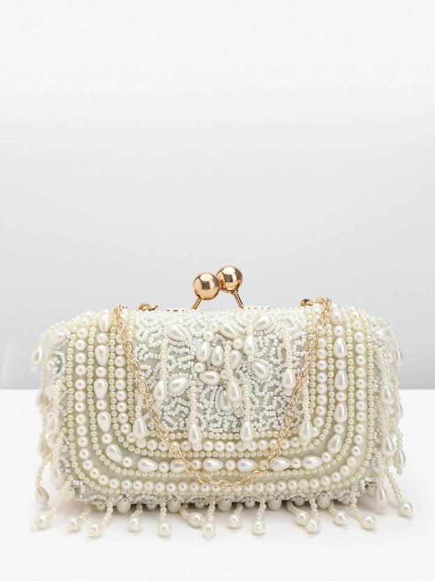 Off white Hand Embroidered Box Cltuch for Bridal, Wedding