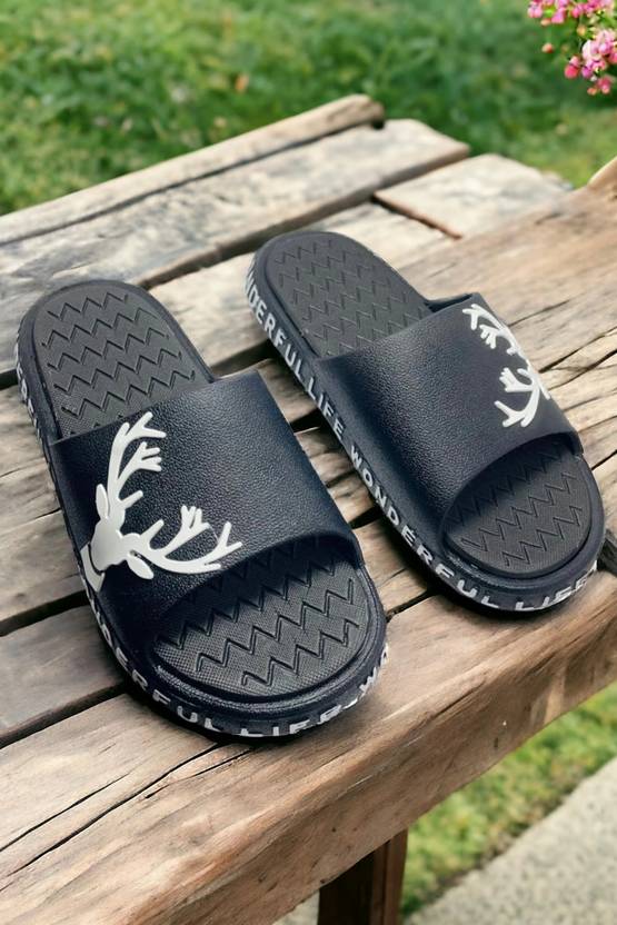 Fabbmate Boys Slip On Slipper Flip Flop (Black , 8-9 Years)