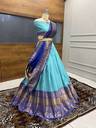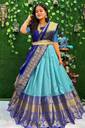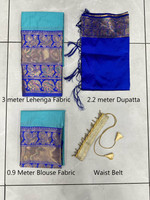Both the lehenga and dupatta are made of fine art silk, which has an exquisite, smooth feel and appearance. This luxurious material drapes exquisitely, adding to the ensemble's overall charm and exuding a regal air. The jacquard fabric of the choli adds a subtle yet exquisite elegance to the outfit, balancing the lehenga and dupatta.