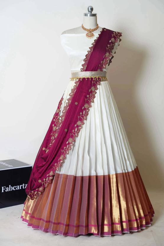 Fabcartz Self Design Semi Stitched Lehenga Choli (Purple, White)
