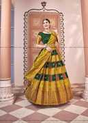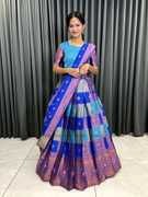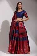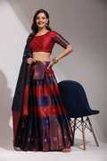 Everything you need for a full ensemble is included in this set: a Dupatta, an unstitched Choli, and a semi-stitched Lehenga. The Dupatta accentuates the grace and elegance of your ensemble, completing the look of the lehenga and choli. This entire set gives you a ready-to-wear ensemble, so you can easily pull off a polished and put-together appearance.