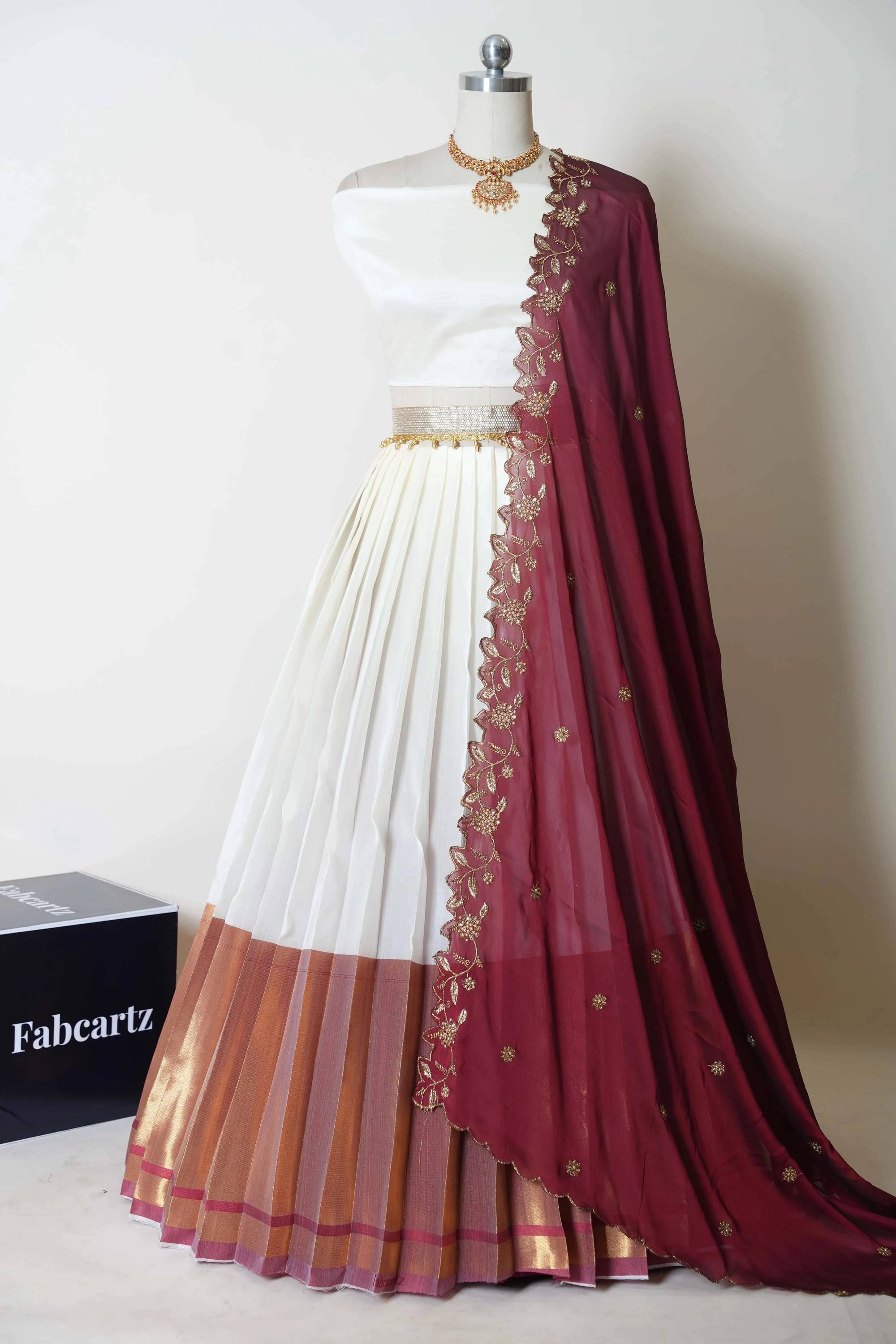 Fabcartz Self Design Semi Stitched Lehenga Choli (Maroon)