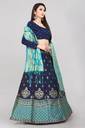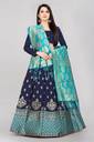 Fabcartz Solid Semi Stitched Lehenga Choli (Light Green, Dark Blue)
